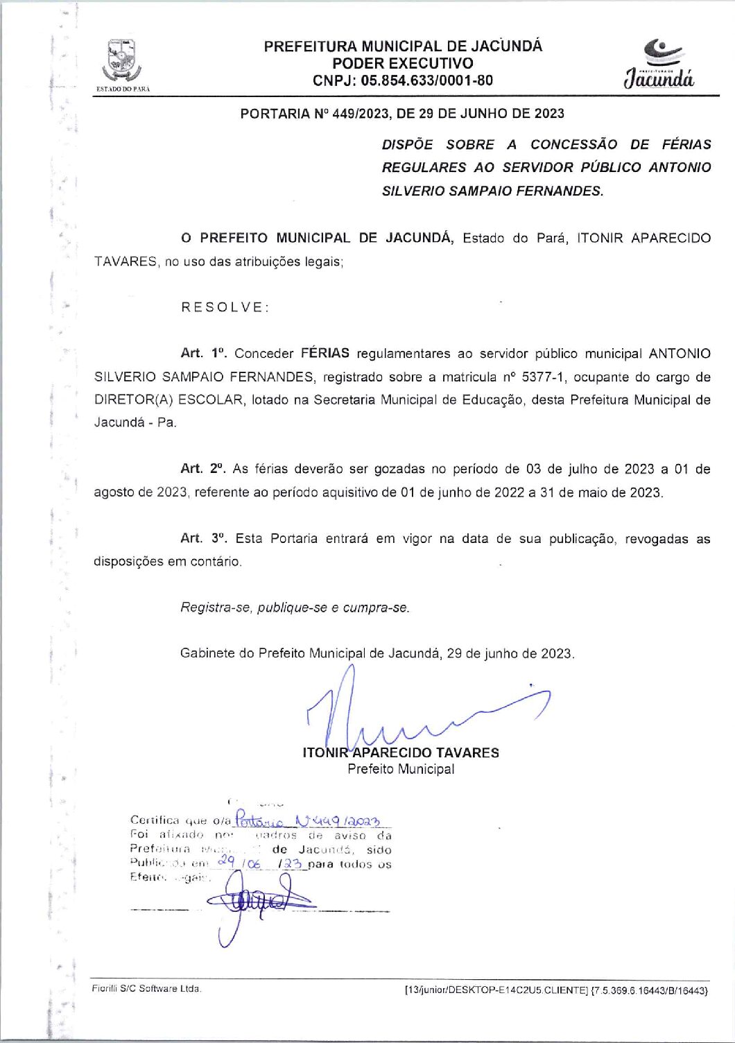 PORTARIA N°449-2023-ANTONIO SILVERIO SAMPAIO FERNANDES