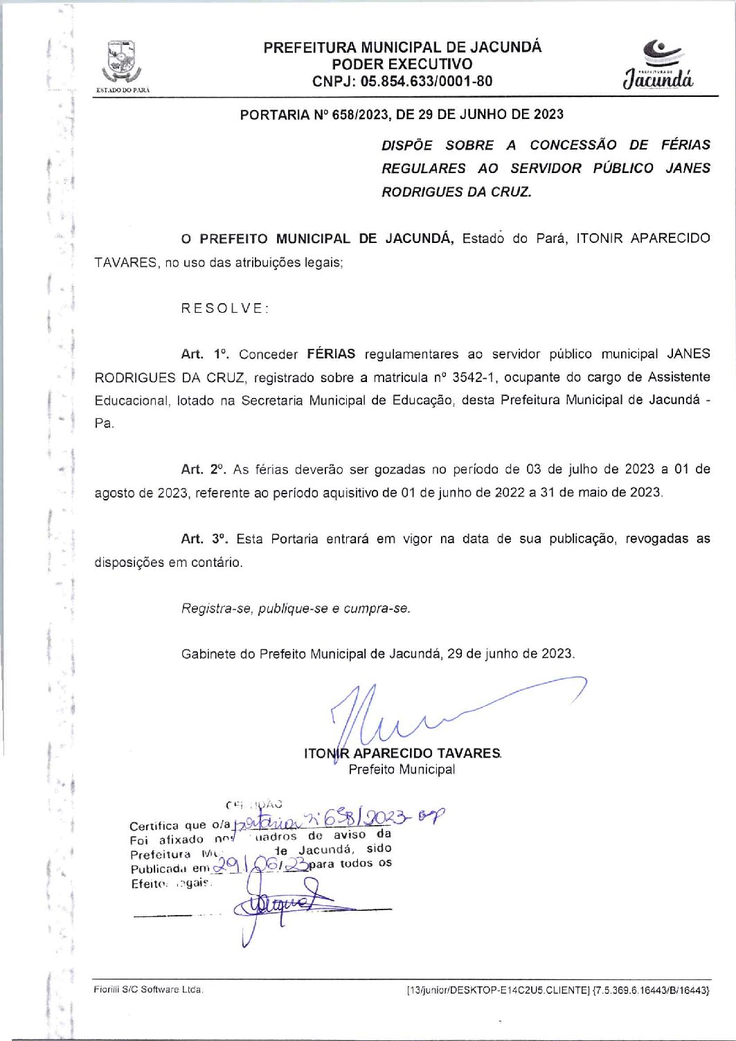 PORTARIA N°658-2023-JANES RODRIGUES DA CRUZ